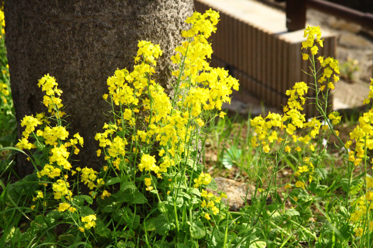 沿道には桜以外にも春の花が植えられ、足元も華やかです。