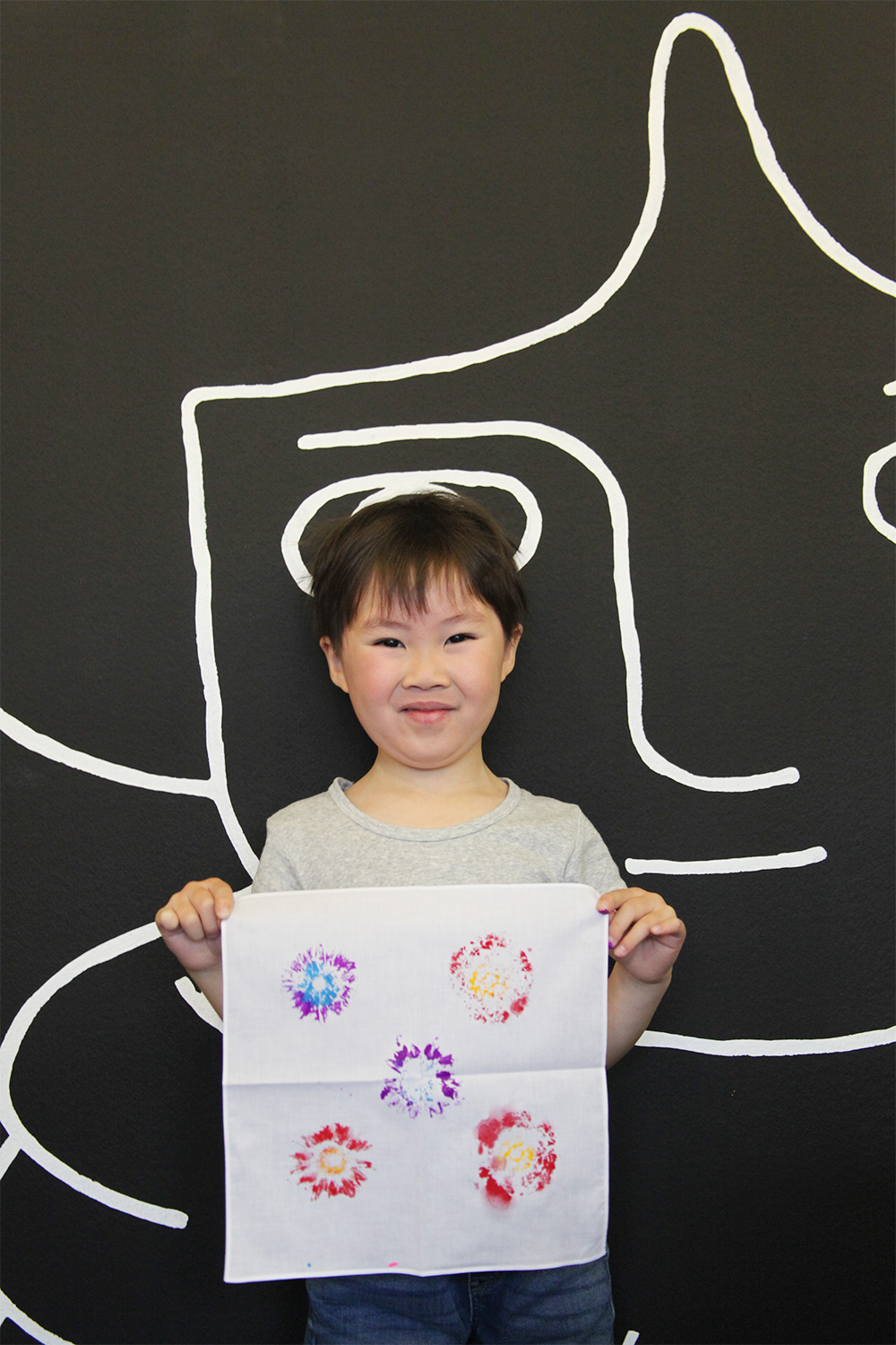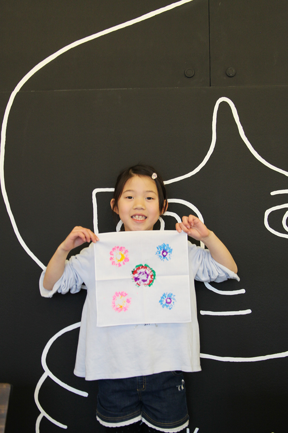 みんなハンカチをよく乾かして、大切に持って帰っていきました。絵の具は油性のものを使っているので、通常の洗濯では落ちないそうです。
